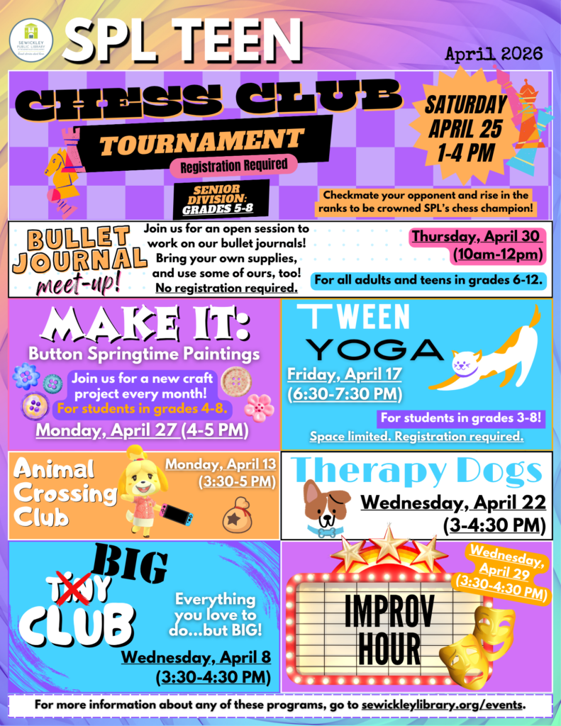 Want the latest info on what’s happening in the Teen Department? Sign up for the email list, and never miss an awesome program again!