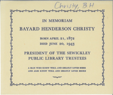 According to Mr. Bayard H. Christy in a report prepared for the Home and School Association of Sewickley on November 8, 1912, the Sewickley Public Library owes its origins to the arrival of a whiskey boat at the Saw Mill landing one Saturday evening in the winter of 1872-73. “The consequent riot and disorder…led some, interested in the welfare of the young men, to think that such things would not be, had we a place for proper and rational amusement and self improvement.”