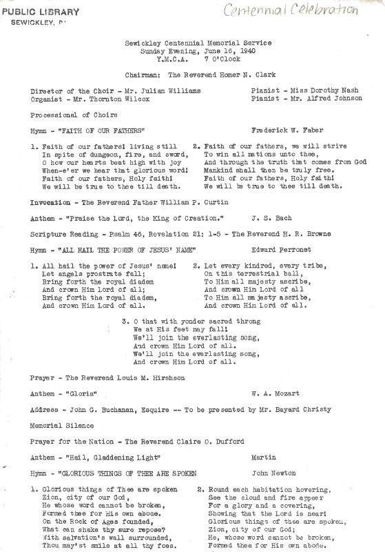The Young Men’s Library Association was formed in 1873 and rented a room for library services at the Mozart Hall (corner of Beaver and Broad Streets). It was later moved to a building next door called Choral Hall. In 1880 the property of the library was transferred to the Sewickley School Board under the general school laws of the state.