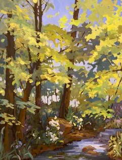 This current series of paintings of Tuscany were painted from his studio here in Pittsburgh between 2019 and 2024, recalling memories and a connection to his early period of painting. Gerbino finds it interesting to paint these Italian landscapes while living in the United States. If the viewer looks closely, they may see a nostalgic quality in them.